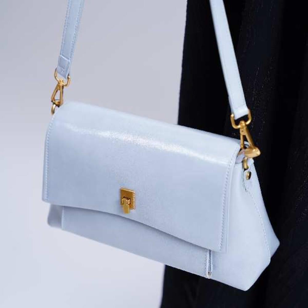 - الألوان: أزرق سماوي هادئ مع قفل معدني ذهبي