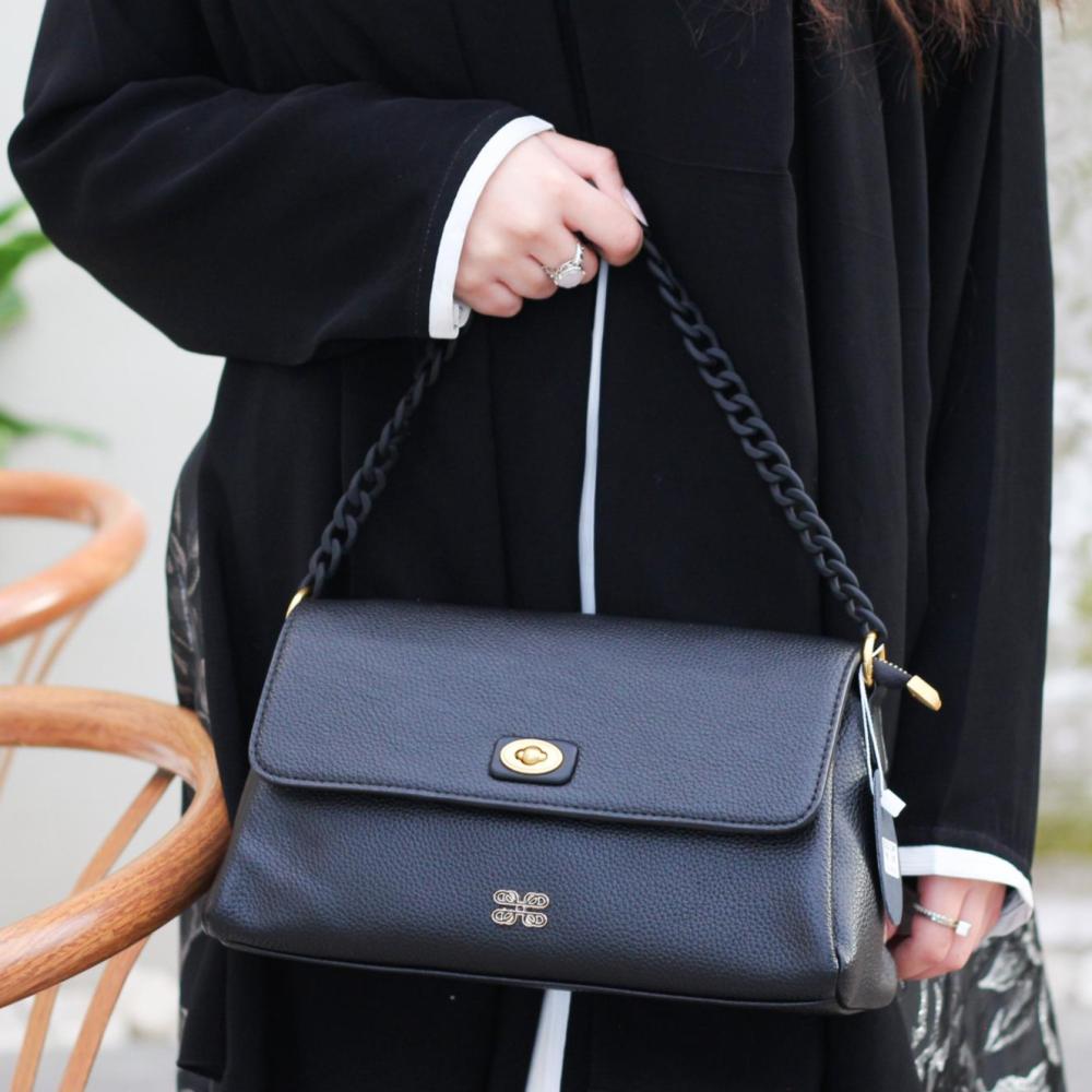 • الحزام: سلسلة أنيقة من المعدن مع تفاصيل جلدية لراحة الحمل.